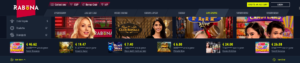 El casino Rabona tiene muchos juegos que ofrecer a los jugadores que buscan diversión. Es posible jugar en casi dos mil máquinas tragamonedas. Los títulos disponibles provienen prácticamente de todos los principales desarrolladores y se pueden jugar tragamonedas de Amatic, Netent, Habanert o Betsoft. Ciertamente no falta ningún juego y se agregan nuevos juegos regularmente. Además de las tragamonedas, hay una gran selección de juegos con crupieres en vivo. Si eres bueno en el póquer, es recomendable jugar al Caribbean Stud Poker, por ejemplo, y si prefieres la ruleta clásica, puedes apostar en los campos de Roulette First Person, que es operado por chicas encantadoras. Es importante destacar que los juegos están cuidadosamente ordenados por desarrollador y categoría, y es posible buscar por etiquetas como “Juegos de alta volatilidad”, “Juegos deportivos” o “Juegos populares”.
